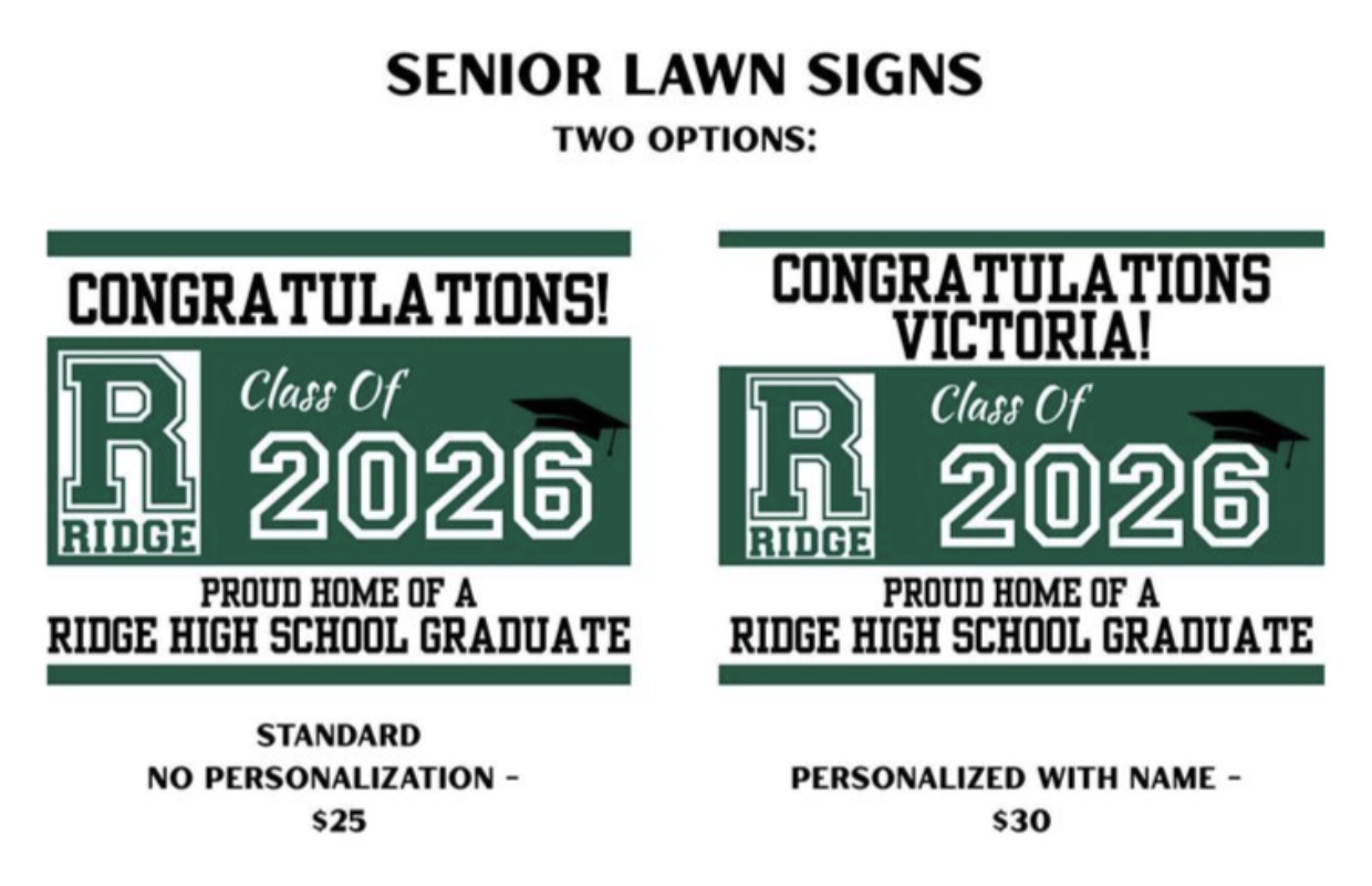 Lawn Signs will be distributed to parents / students at school in mid-May. You will be contacted when orders are ready for pick-up.