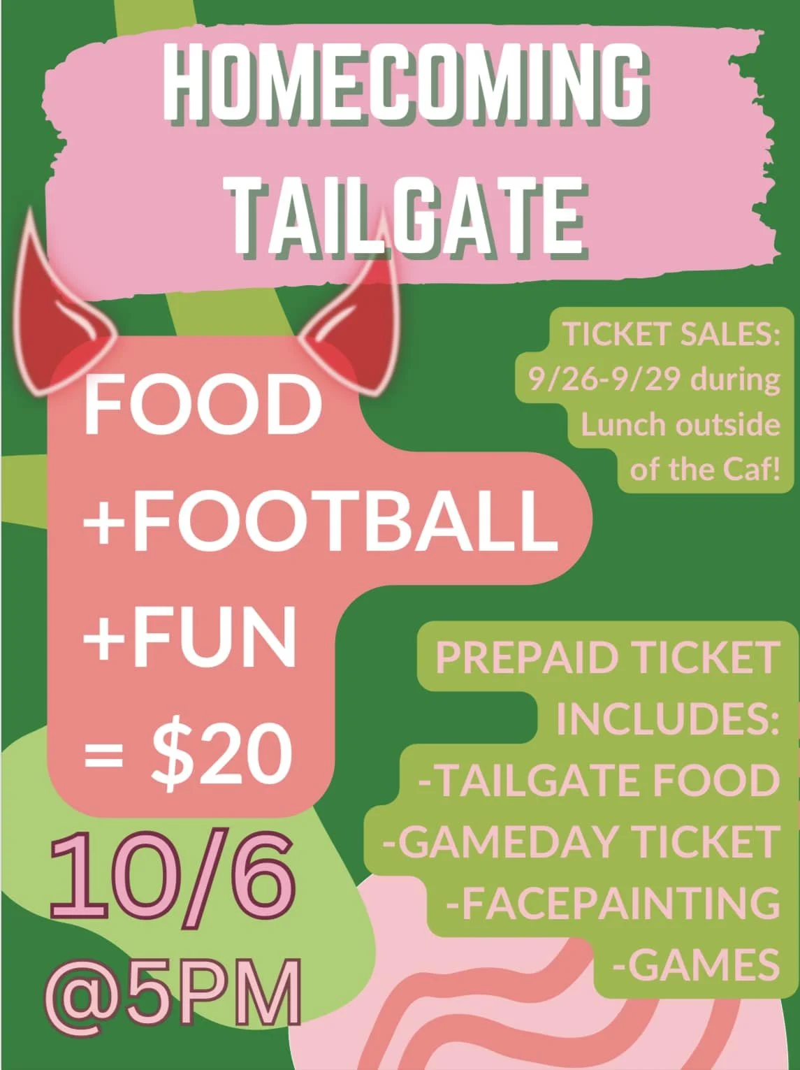 Homecoming will be on Friday, October 6! Help us start the festivities by coming to the Homecoming Tailgate at 5pm before the game. There will be food, football and fun! Tickets will be sold in advance at lunch the week of September 26-29 and are $20. Tickets include tailgate food, a ticket to the game, face painting, and games. All grades are encouraged to attend! Have questions? Please reach out to studentgov@bernardsboe.com.