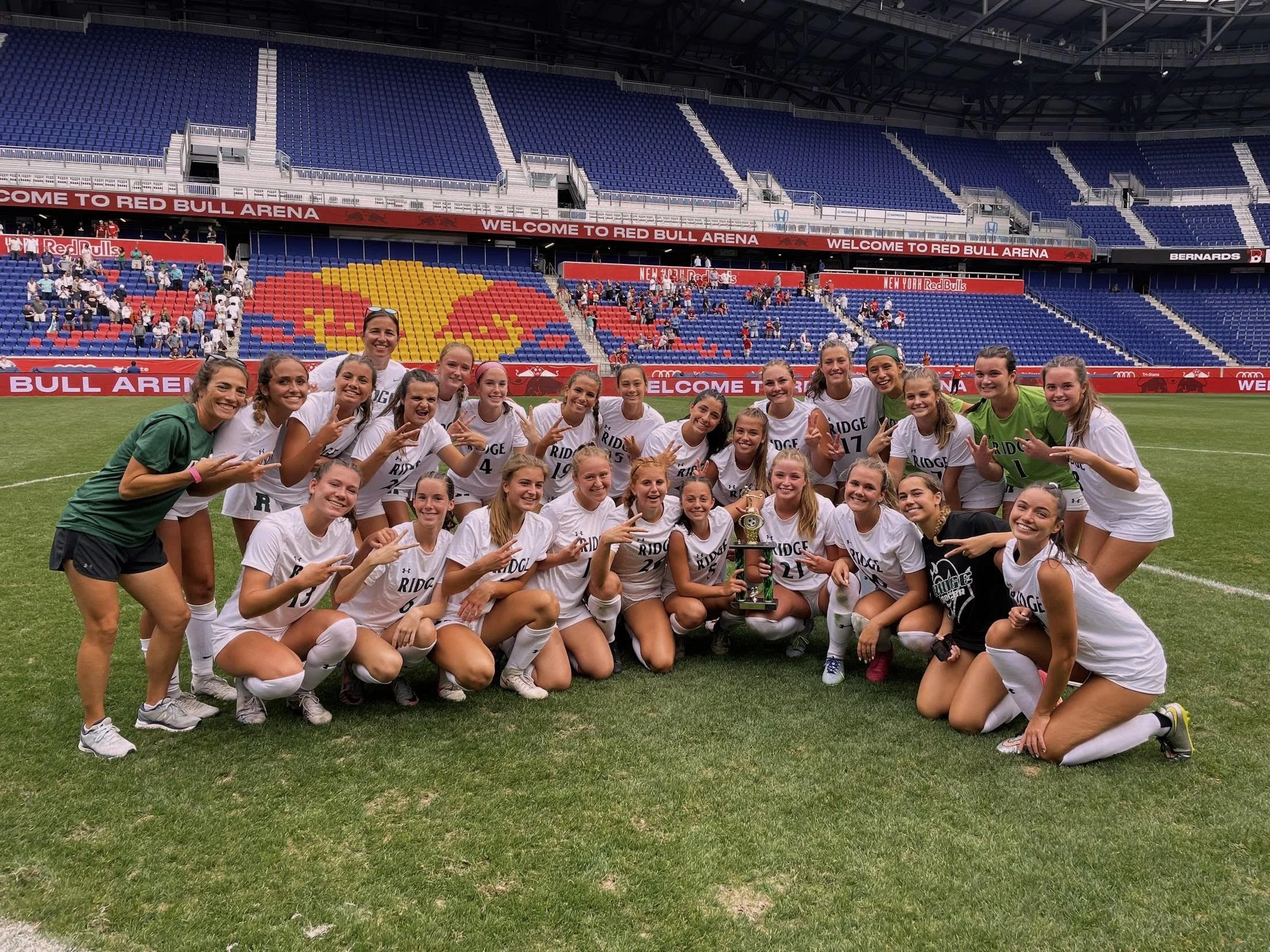 The Ridge Girls Soccer team had a shot at a once-in-a-lifetime venue this weekend and they didn't waste it. On Sunday, 9/17, Ridge defeated Bernards at Red Bulls stadium 2-1 to take the Finley Trophy home for the second year in a row. Bernards came up with an early goal which was answered by Renata Cicala. Maddy Landes scored late in the second half on an assist from Nicole Gerbert. Goalkeeper Jessie Good made five saves to keep Ridge in the game. The back line showed solid performances from Ellie Bozzo, Charlotte Connors, Elena Nicholson, and Libby Deneschaud, while the midfield was anchored by senior veterans Laura Carney, Sophia Antongiovanni, and Sydney Gunn. Lauren Coffey and Emily Weiner applied pressure on the offensive line.